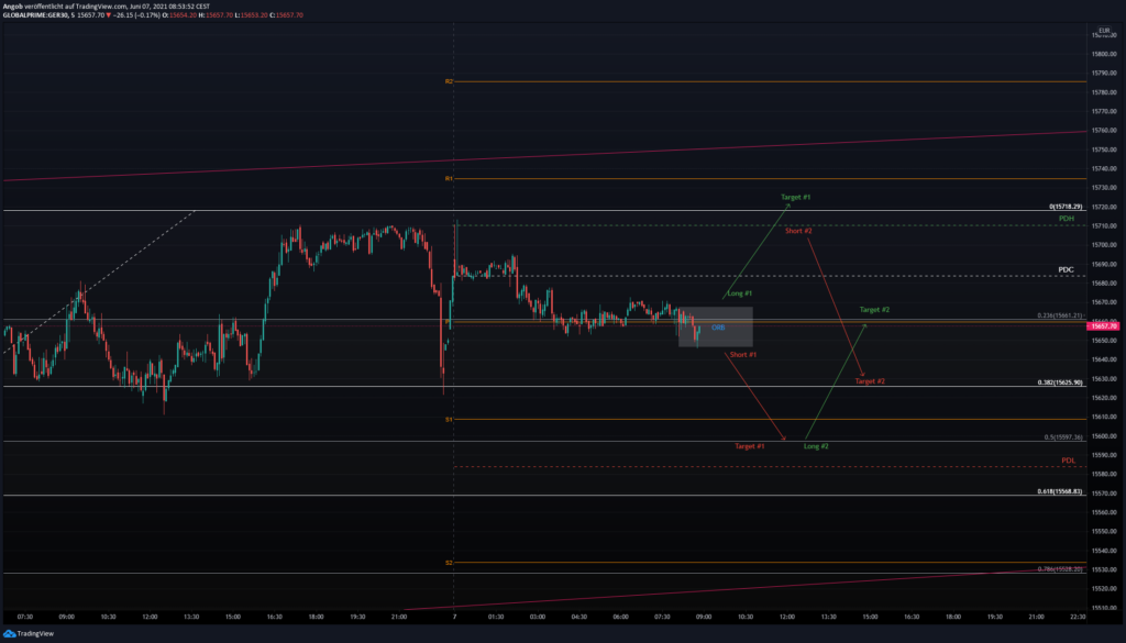 Szenario #2:       Entryzone: ca. 15640 (ORB)                        Targetzone:  ca. 15600