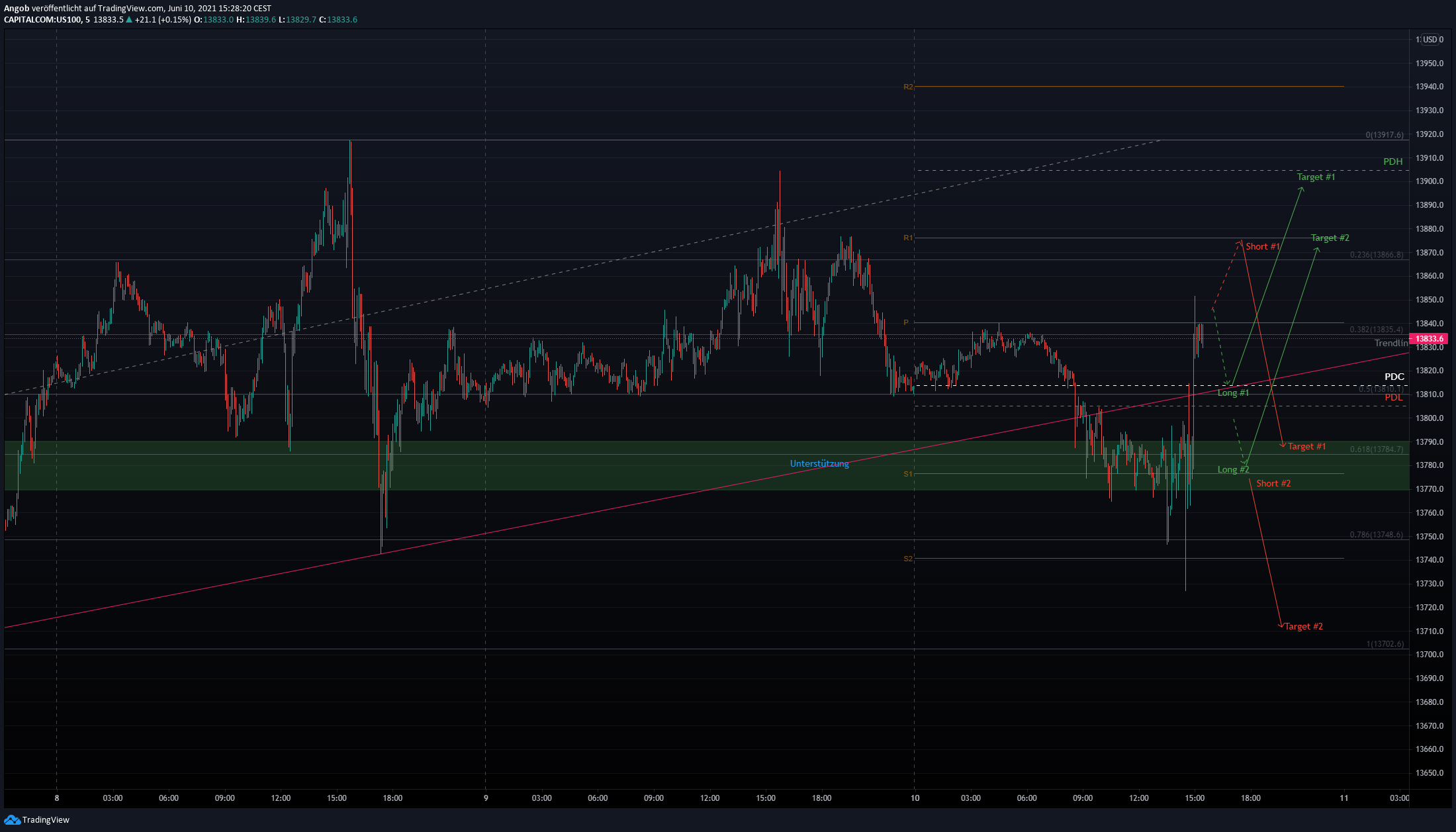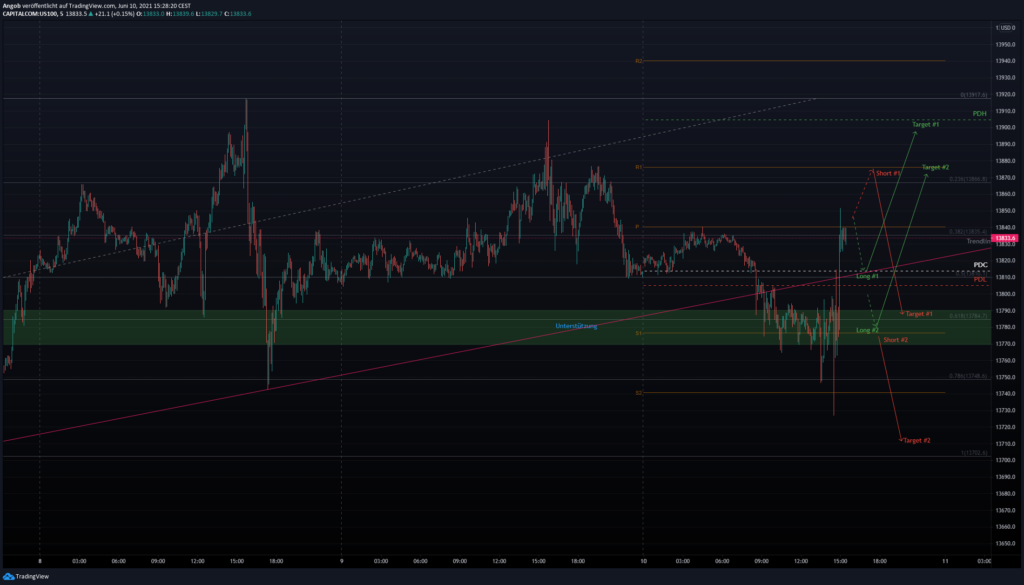 Entryzone: ca. 13880 (PIvotlevel R1) –> Targetzone:  ca. 13790 (Unterstützungszone)