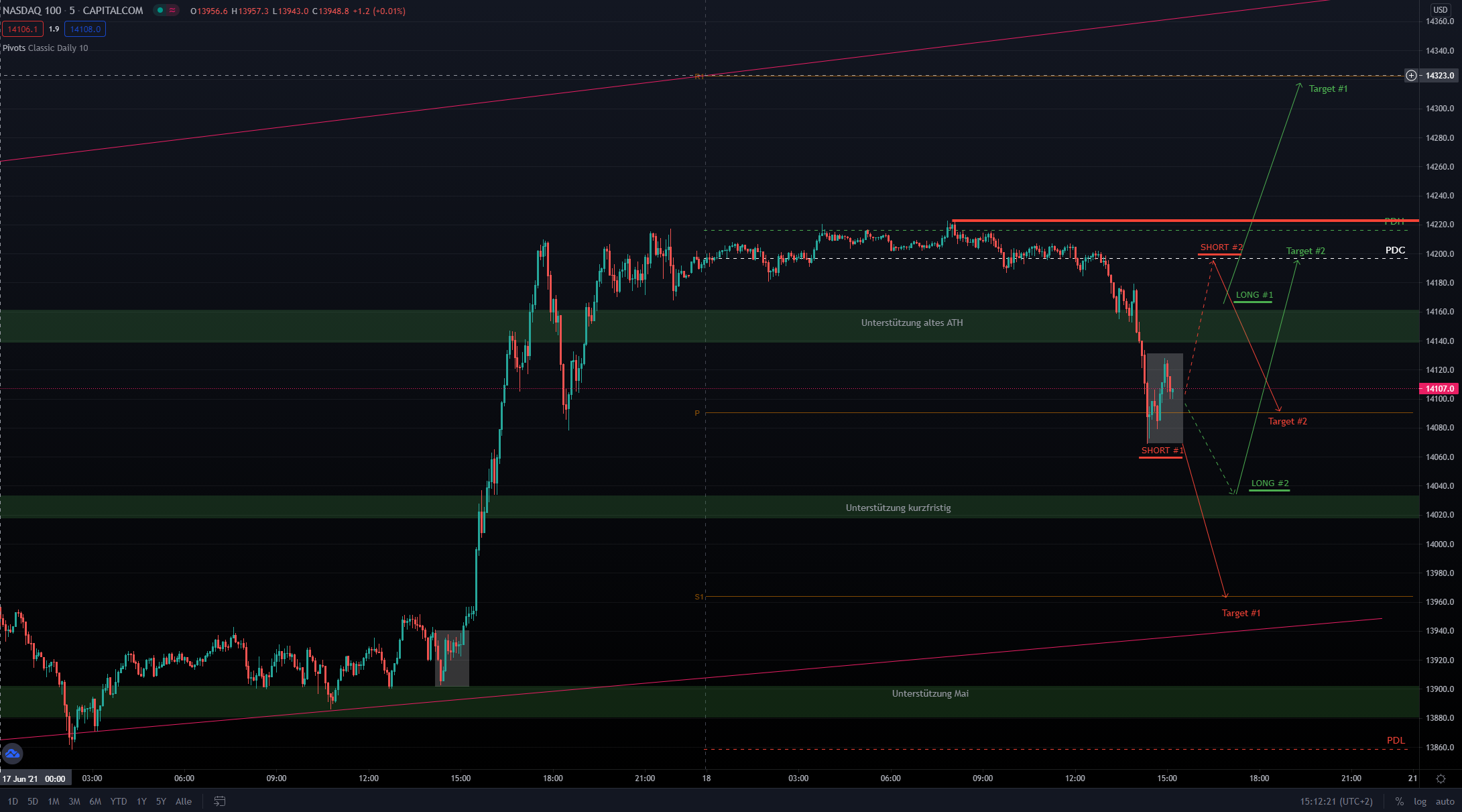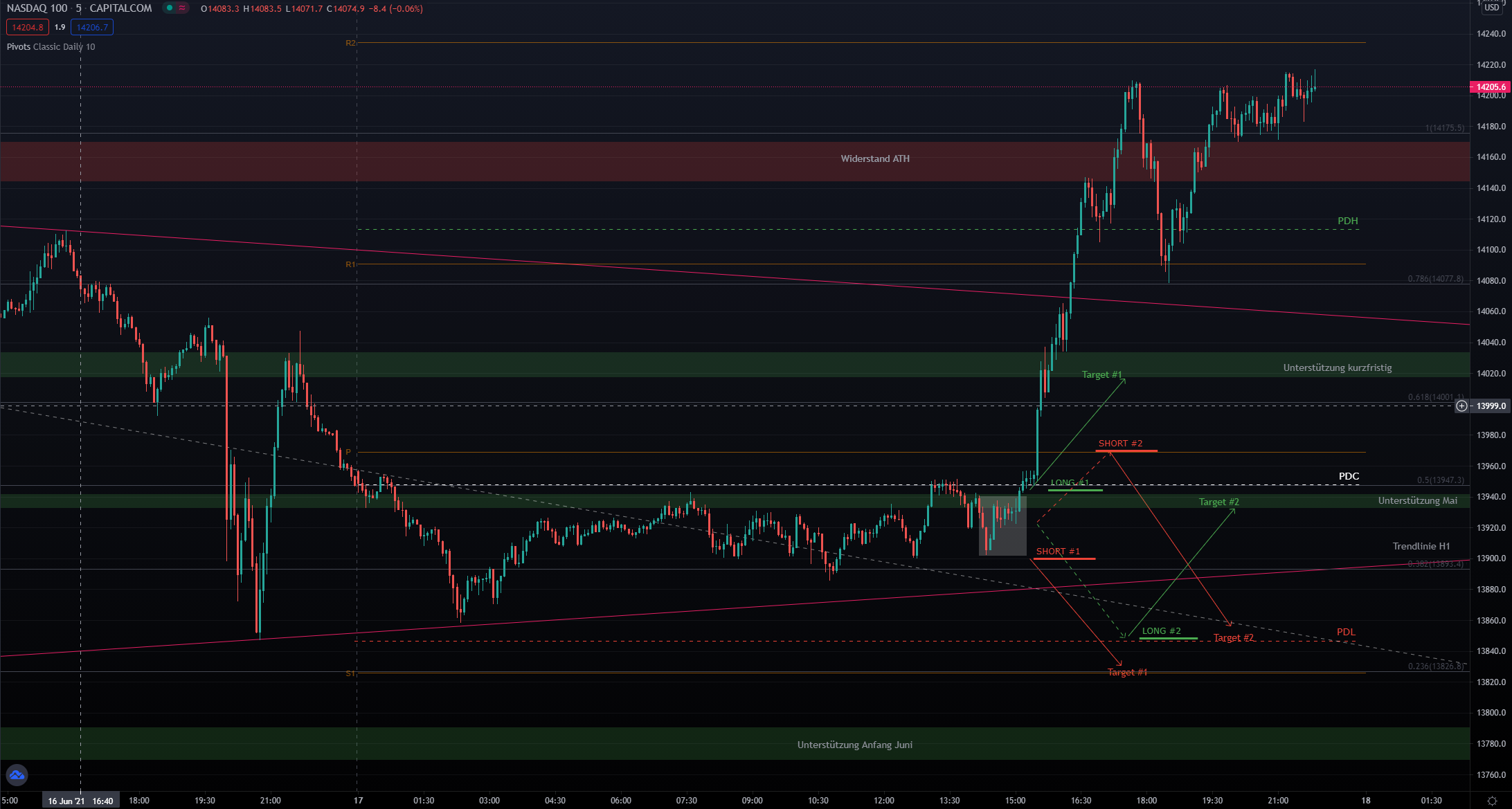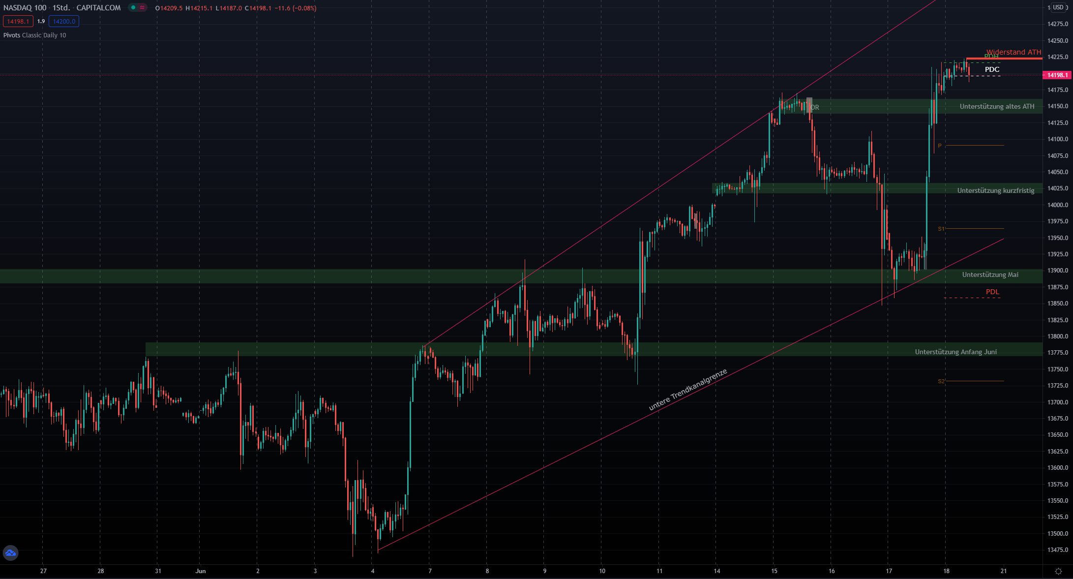 Entryzone: ca. 14040 (PDL) –> Targetzone: ca. 14200 (PDC)