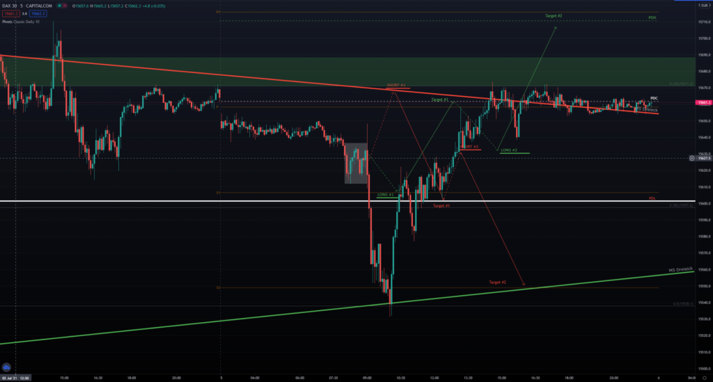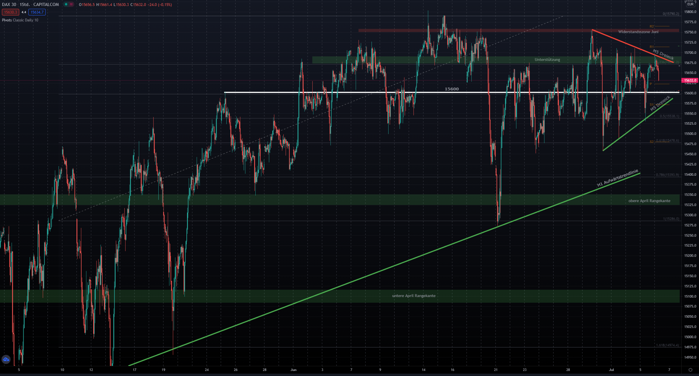 Entryzone: ca. 15710 (PDH) –> Targetzone: ca. 15625 (Pivot)