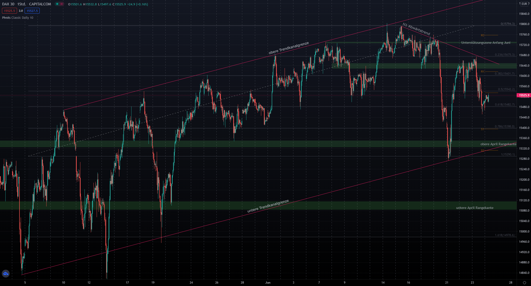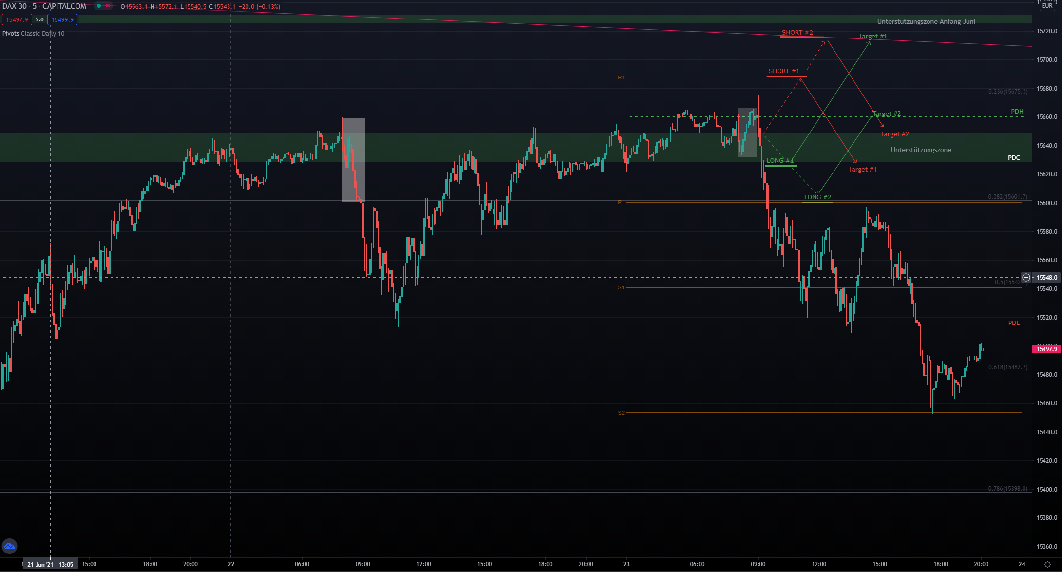 Entryzone: ca. 15480 (61er Fib) –> Targetzone: ca. 15540 (Pivot)