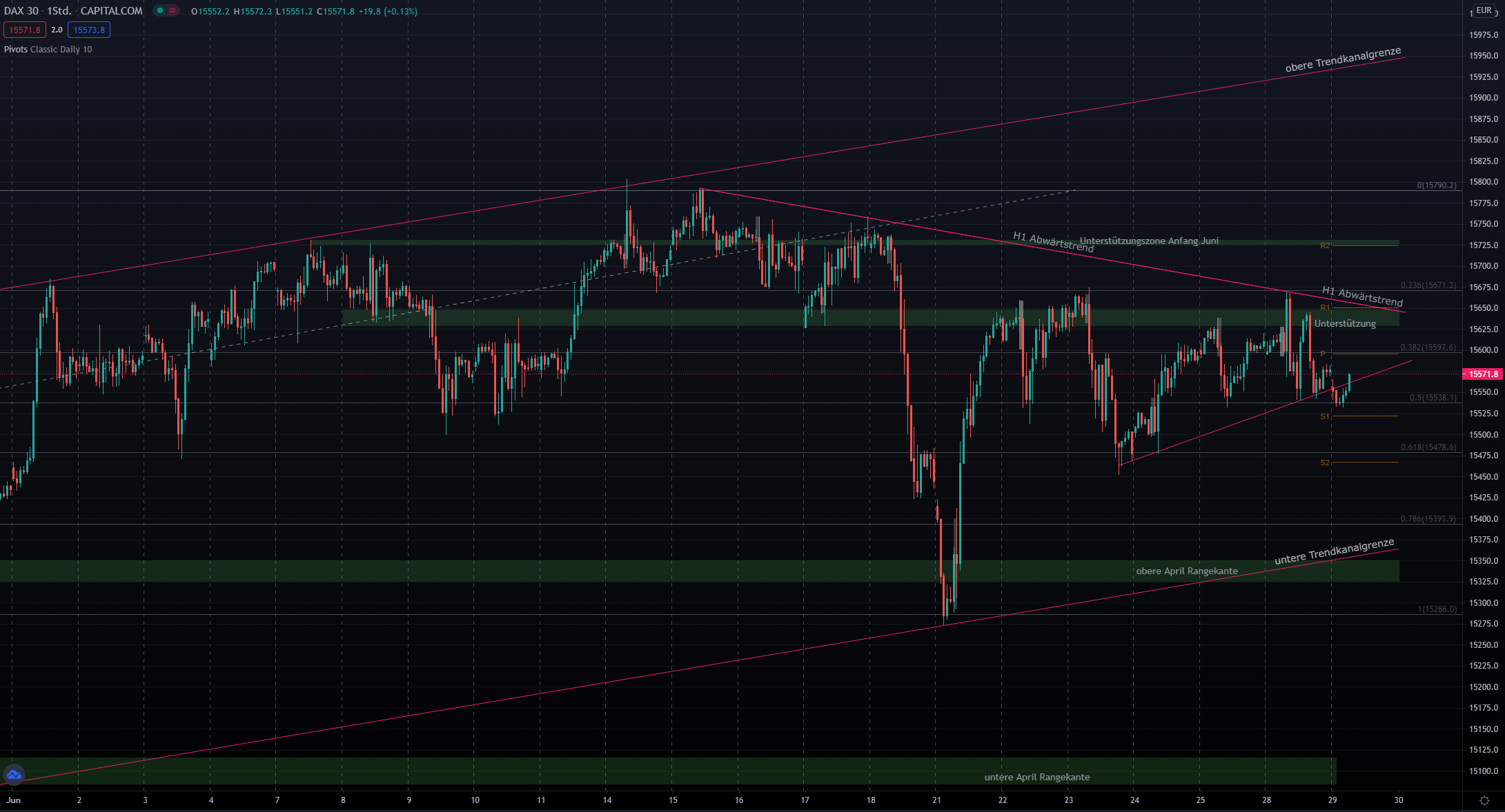 Entryzone: ca. 15545 (PDL) –> Targetzone: ca. 15600 (Pivot)